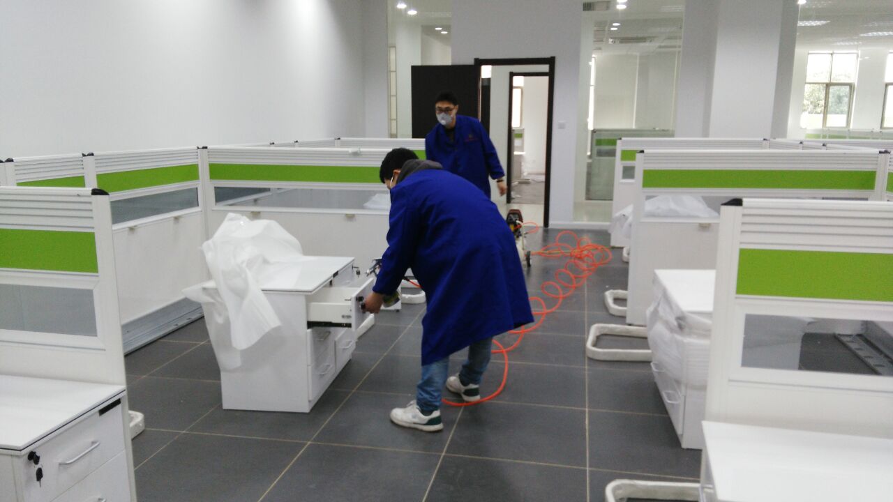 根據(jù)實地考察該單位裝修特點,結(jié)合先前檢測的數(shù)據(jù)報告,我們?yōu)槠渥隽嗽敿毜氖┕ぶ卫矸桨福笃涔绢I(lǐng)導(dǎo)審核,經(jīng)刪選同意并認(rèn)可我公司的施工治理方案。經(jīng)過施工治理——復(fù)檢修補——驗收審核等工序,該工程于近日全部完工。下圖為工程施工現(xiàn)場: