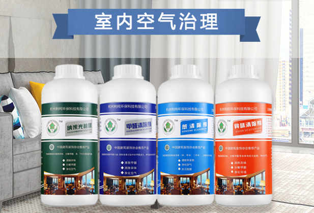 異味清除劑(生物酶)原理:利純異味清除劑產(chǎn)品原液中含有特種微生物的孢子,在有氧環(huán)境、溫度、濕適合的條件下,原液噴涂到基材表面后,其中的孢子會(huì)轉(zhuǎn)變?yōu)樘胤N微生物,微生物有強(qiáng)大的繁殖能力,通過(guò)自身繁殖產(chǎn)生生物酶,并能分泌一定的活性酶,在微生物和酶的雙重作用下,能把基材中能揮發(fā)出來(lái)的甲醛、苯、氨、TVOC等有害氣 體物質(zhì)分解為無(wú)毒無(wú)害的二氧化碳(CO2 )、水(H2 O)、二氧化氮(N02 )等 物質(zhì),能從污染源頭祛除醛類、苯類等有機(jī)污染物及異味,達(dá)到凈化空氣的目的。